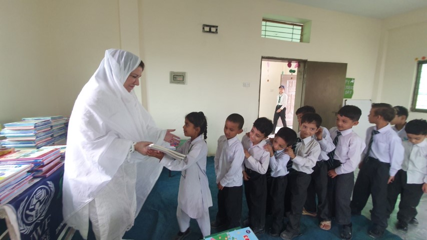 H.E EXCELLENCY RAHEELA KHAN distributes new academic syllabus books at the INNER VOICE EDUCATION SYSTEM Burma Town branch. The facility provides free educational facilities and daily meals to street children.